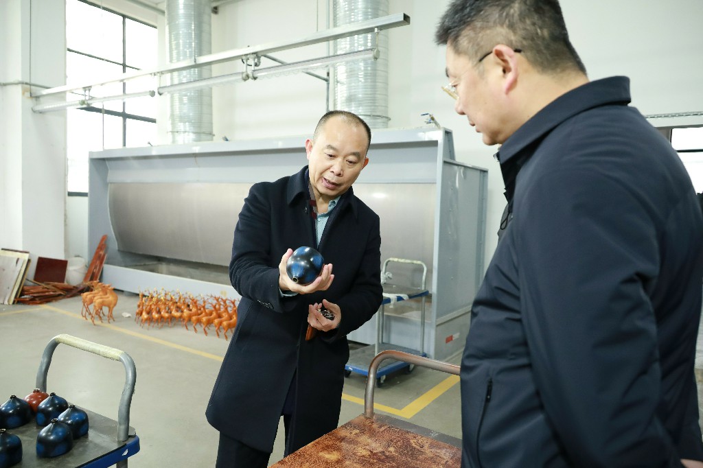 12月28日下午,銅官區(qū)區(qū)委書記王書春到銅官府銅藝文化產(chǎn)業(yè)園調(diào)研指導(dǎo),區(qū)委常委、常務(wù)副區(qū)長汪志祥陪同。銅官府趙敏及金星銅、大明銅匠負(fù)責(zé)人匯報(bào)了企業(yè)經(jīng)營發(fā)展情況。